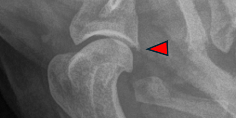 In October 2023, Martha started limping on her left forelimb. As a 10-year-old, it was likely that osteoarthritis was the cause. It was recommended that Martha started a joint supplement and NSAIDs were discussed, which the owners facilitated. However, in November Martha deteriorated and was not weightbearing properly on that limb at all. Upon examination, it was thought there could be some nerve pain so further analgesia was added (Gabapentin and NSAID combination). The owner requested further investigation, so our orthopaedic experts worked Martha up, gaining enough evidence that there was ground to radiograph and take samples from the left shoulder joint. It was identified that a mild osteophyte (bone spur) of the caudal glenoid (the socket of the ball-and-socket shoulder joint) was present.